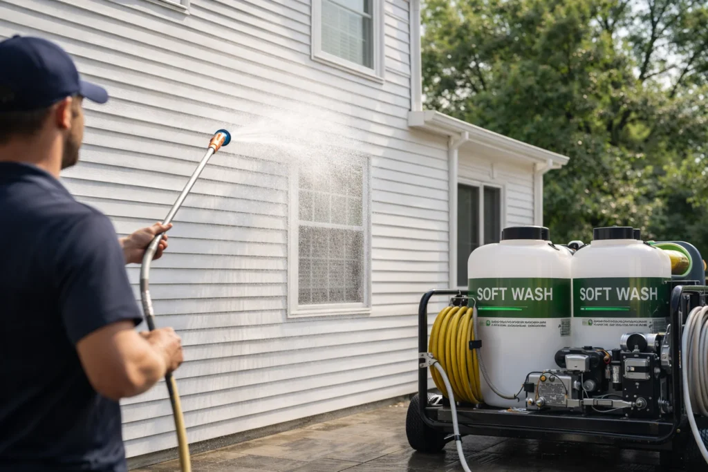 We use soft wash equipment specifically calibrated for fence materials — wood-safe pressure that cleans without splintering. The right technique makes the difference between restoration and damage.